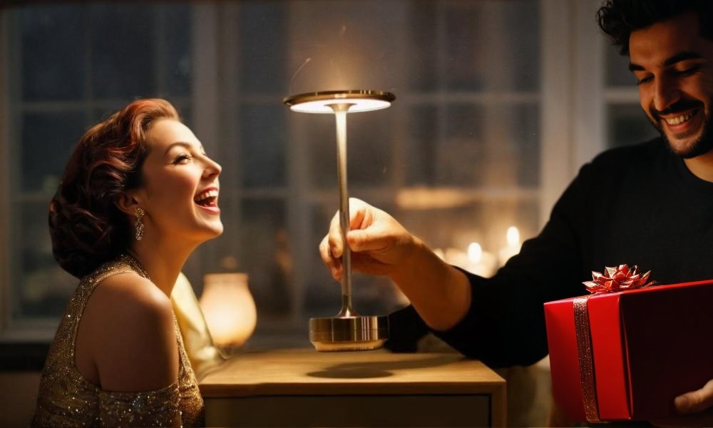 Then I gently touched its top to turn it on, and a soft, inviting glow filled the room instantly.